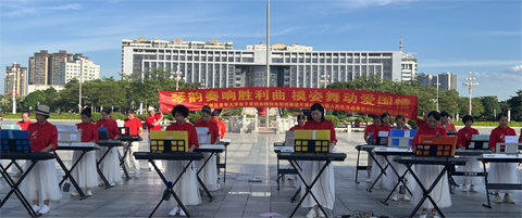 铭记历史,永跟党走 今年是纪念中国人民抗日战争暨世界人民反法西斯战争胜利80周年,8月24日上午,玉州区老年大学电子琴班和模特身韵班联合在市政广场市博物馆前举行“琴韵奏响胜利曲,模姿舞动爱国情”快闪活动。