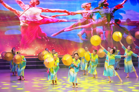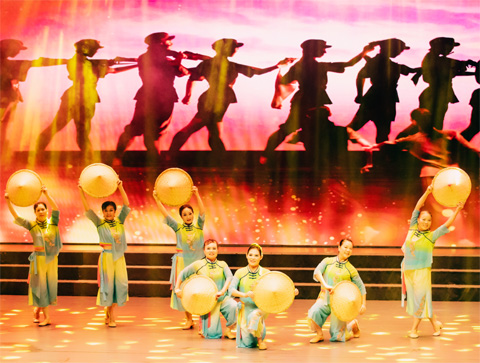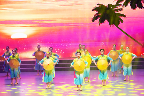 玉州区老年大学艺术团代表区委组织部参加玉林市第十三届多彩金秋文艺汇演演出的舞蹈《万泉河水清又清》。