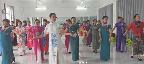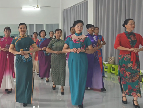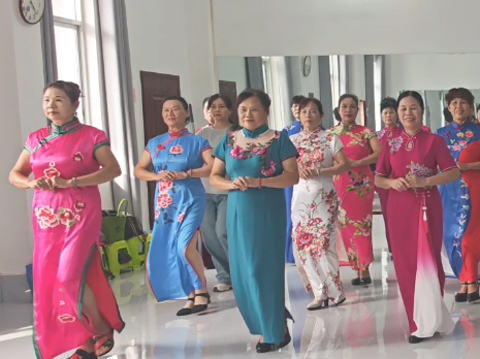 今天下午是旗袍4班本学期的第一课。刘军老师穿着优雅的新旗袍早早的来到教室等待着同学们的到来,同学们也穿上了美美的旗袍整整齐齐的站好位置等待上课,内心的激动都展现在笑脸和上扬的嘴角,师生这种双向奔赴的关系构成了课堂的最美风景。优雅的旗袍衬着优雅的我们,让我们就这么一直美下去吧。