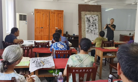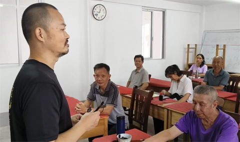 今天早上是书法班开学第一节课,加入了很多新学员。梁耀老师为兼顾新老同学的学习,认真讲课,书法从运笔及欧体、楷书、柳体结构去认识,祥细讲授,同学们认真听课。