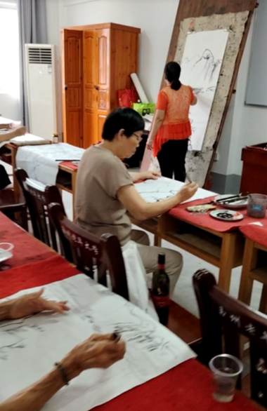 今天我们国画班开学的第一节课,同学们在陈老师的细心指导下,认真绘画,看,一幅美丽的图画就慢慢画出来了。
