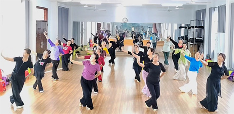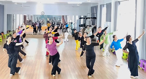 梨韵舞蹁跹,银发逐艺忙! 秋日的玉州区老年大学古典舞2班课堂,暖意与雅韵交织。韦老师正以专业细致的姿态,带领学员们打磨戏曲古典舞《梨花赋》的每一处细节。 抬手时,她逐人纠正手腕弧度,确保尽显戏曲“兰花指”的柔婉;转身间,她耐心示范身段衔接,让“圆场步”如行云流水。学员们虽鬓染银霜,却满含热忱,眼神专注地跟随老师调整姿态,反复练习水袖轻扬的弧度、腰腿舒展的力度,力求将梨花的清雅与戏曲的韵味融于一舞。 课堂里,细碎的指导声与轻柔的乐曲声相融,勾勒出一幅老有所乐、以舞逐美的动人画面。